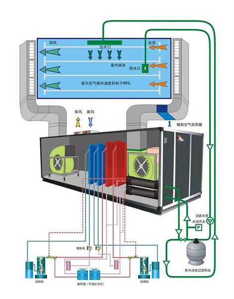 泳池熱水泵恒溫除濕機組得到更加廣泛的應用