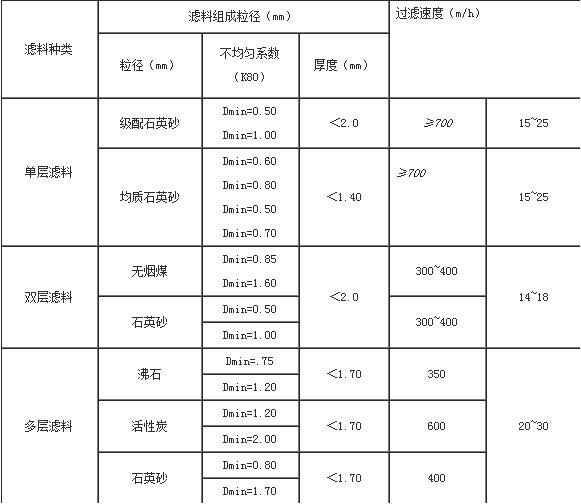 濾料、過(guò)濾速度選用表