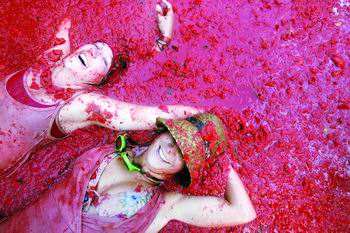 美國佛羅里達州著名的番茄浴,長期沐浴能讓人充分吸收番茄的營養成份。不過我想沐浴的時候會不會忍不住喝口番茄汁呢。