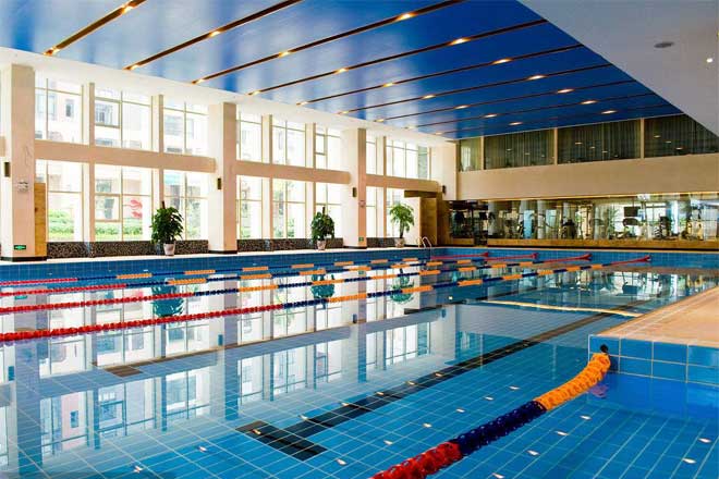 1、游泳池設計美觀,建筑面積寬敞,層頂高大,頂棚與墻面玻璃應大面積采光良好。